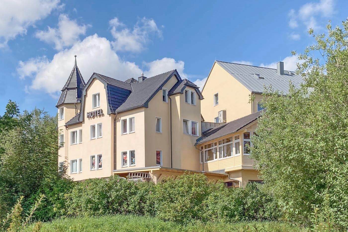 Unsere Gruppe von ca. 50 Wanderern war sehr gut untergebracht im Schlossberghotel. Alle Bäder frisch renoviert. Sehr ruhige Lage in Ortsnähe in Nachbarschaft zum Wellnessbad. Ausgesprochen freundliches, professionelles und stets gut gelauntes Personal bei den Mahlzeiten. Sehr entgegenkommend bei Sonderwünschen (z.B. vegetarische Ernährung). Die Leitung hatte alles im Griff. Guter Ausgangspunkt für Wanderungen. Verschiedene, helle und gemütliche Räume für die Mahlzeiten.